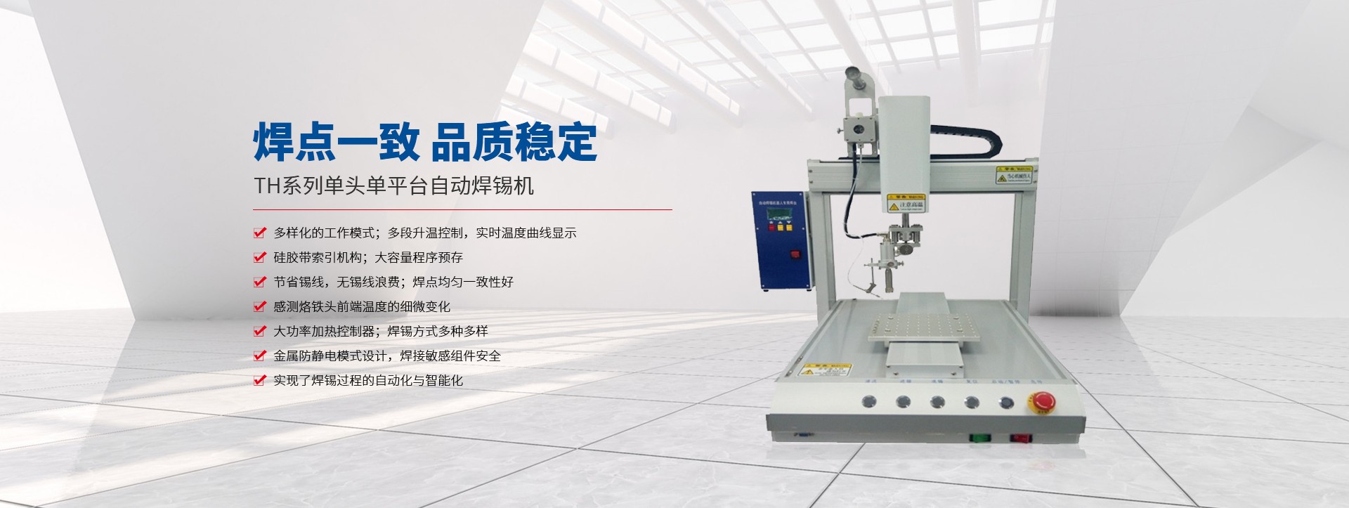 蘇州拓航機械設備有限公司成立于2016年,是一家集研發(fā)、制造、銷售及技術服務于一體的自動化設備生產廠家,主營產品有自動螺絲機、自動焊錫機、自動點膠機、自動灌膠機 脈沖熱壓機,及各類型的非標自動化設備。